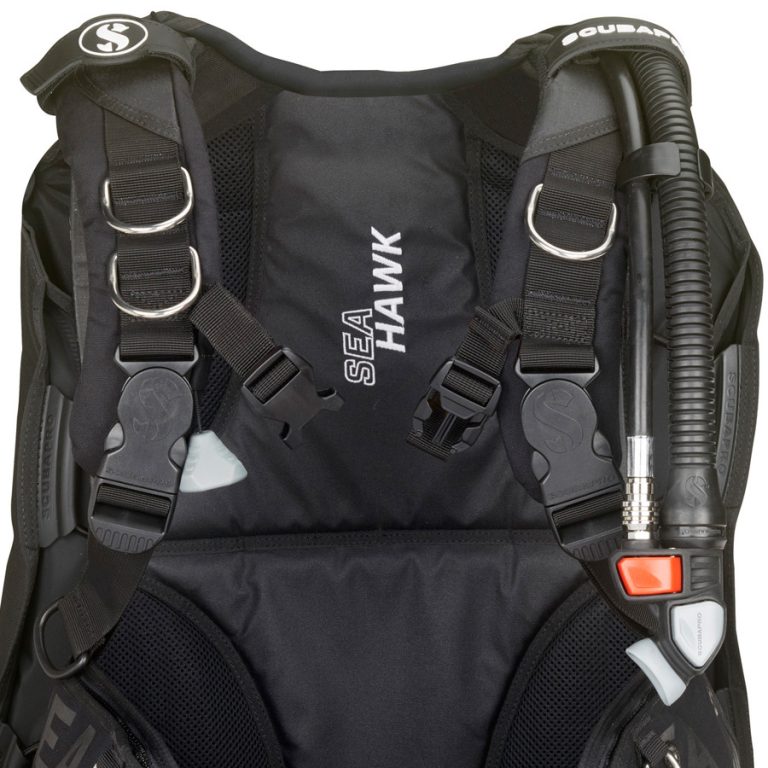 Seahawk 2, le gilet de stabilisation multi-usages populaire est désormais doté de bretelles ergonomiques à boucles pivotantes et d’un backpack confortable et renforcé. Le gilet Seahawk 2 est ainsi léger et extrêmement simple à replier et à ranger. La sangle de bouteille Super Cinch avec boucle inox est placée légèrement plus bas qu’auparavant et une sangle crochet et boucle supplémentaire a été ajoutée pour un maintien parfait du bloc en plongée. Parmi les autres caracteristiques, on retrouve une sangle ventrale de 50 mm pourvue d’une boucle légère, des poches cargo et une gamme de raccords de flexibles et soupapes. Offrant un parfait hydrodynamisme mais aussi une flottabilité considérable au besoin, le gilet Seahawk 2 est parfait pour les plongeurs recherchant liberté de mouvement, confort et stabilité lors de leur exploration des profondeurs.
